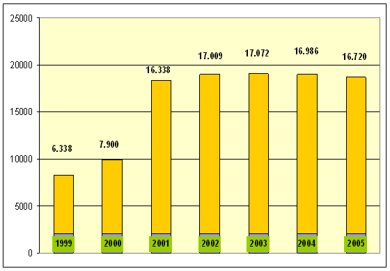 AUSWERTUNG DER STATISTISCHEN DATEN 2005 Seit Beginn der Frauenhelpline, 1. Juni 1999 wurden insgesamt 98.363 Anrufe von den Mitarbeiterinnen der Frauenhelpline entgegengenommen, telefonisch betreut und unterstützt.