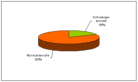 Diese Tabelle zeigt einen bemerkenswerten Anstieg der Zahl der Anrufe im Jahr 2001, der sich damit erklären lässt, dass es im Jahr 2000 eine europäische Kampagne zum Thema Gewalt gegen Frauen in Ehe und Partnerschaft gab, an der auch Österreich teilnahm, und die vom Verein Autonome Österreichische Frauenhäuser für Österreich organisiert und koordiniert wurde. Bei dieser Kampagne wurde unter anderem die Nummer der Frauenhelpline auf Plakaten beworben. Diese österreichweite Kampagne bestätigt, wie wichtig Öffentlichkeitsarbeit ist, um eine Kriseneinrichtung bekannt zu machen. Seither bewegt sich die Zahl der Anrufe in etwa konstant auf derselben Höhe. 2005 haben die Mitarbeiterinnen der Frauenhelpline 16.720 Anrufe persönlich angenommen. Das bedeutet, dass durchschnittlich 46 Anrufe pro Tag entgegengenommen wurden. Tatsächlich wurde die Nummer der Frauenhelpline wesentlich öfters, nämlich fast doppelt sooft angewählt. 2005 wurde die Nummer der Frauenhelpline etwa 29.100 mal angerufen. Die Telefonnummer 0800/222 555 wurde damit im Durchschnitt 80 mal am Tag angewählt. Dies geht aus dem Protokoll des Telefonanbieters hervor, der jede Kontaktaufnahme mit der Helpline erfasst. Auf Grund der Personalkapazität ist die Frauenhelpline in der Regel nur einfach besetzt und es ist daher nicht immer möglich, jeden Anruf entgegenzunehmen und zu beantworten. Statistisch festgehalten und in dem vorliegenden Bericht ausgewertet werden nur jene Anrufe, die auch tatsächlich angenommen wurden. Typ der Anrufe Die erfassten Anrufe werden in so genannte Normalanrufe und in Schweigeanrufe