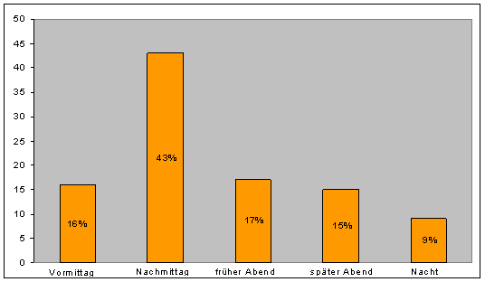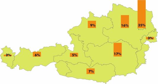 die Frauenhelpline wandten. Verteilung der Anrufe auf die Woche Knapp ein Drittel aller erfassten Anrufe 28% erfolgte 2005 am Wochenende, in einer Zeit, in der viele andere Hilfseinrichtungen geschlossen sind. Das zeigt, wie wichtig es ist, dass diese Einrichtung auch an Samstagen und Sonntagen bzw. Feiertagen allen zur Verfügung steht. Verteilung Tageszeit Anrufe 2005 hat sich bei der Verteilung der Anrufe nicht viel verändert. Die durchschnittliche, tägliche Spitzenzeit ist am Nachmittag von 12-18 Uhr. Hier lag der Anteil bei 43%. 32% der Anrufe erfolgen am Abend (früher und später Abend von 18 Uhr bis 21 Uhr) und 9% in der Nacht (von 0-8 Uhr früh). Altersverteilung der AnruferInnen Die Altersverteilung der AnruferInnen hat sich im Vergleich zu 2004 bei den jungen Menschen zwischen 13-18 etwas verringert: Während es 2004 41% waren so sind es 2005 36%. Dafür ist der Anteil bei den Erwachsenen von 30% auf 34% gestiegen. 2005 haben 8% Personen über 50 Jahren angerufen. Bei etwa 10% war das Alter nicht ersichtlich; es wird auch nicht bei jedem Gespräch das Alter erfragt bzw. angegeben. Nationalität der AnruferInnen Seit Anfang 2005 sind bei der Frauenhelpline muttersprachliche Beraterinnen beschäftigt, die in mehreren Sprachen (arabisch bzw. ägyptisch, bosnisch-kroatisch-serbisch, englisch, slowenisch, slowakisch und türkisch) beraten. Unter allen AnruferInnen wandten sich 4% der AnruferInnen mit migrantischen Hintergrund an die Frauenhelpline. Etwa 1,5 % (200) aller Anruferinnen (es waren beinahe ausschließlich Frauen) wünschten sich eine Beratung in ihrer eigenen Sprache. Die Gründe für diesen geringen Anteil sind damit zu erklären, dass das Angebot der Frauenhelpline österreichweit noch zu wenig bekannt ist und dass die Anruferinnen auf die muttersprachliche Beratung warten müssen bis die zuständige Beraterin in den Dienst kommt. Mehr Öffentlichkeitsarbeit und fixe muttersprachliche Beratungsstunden würden den Anteil sicher erhöhen. Verteilung der Anrufe auf die Bundesländer